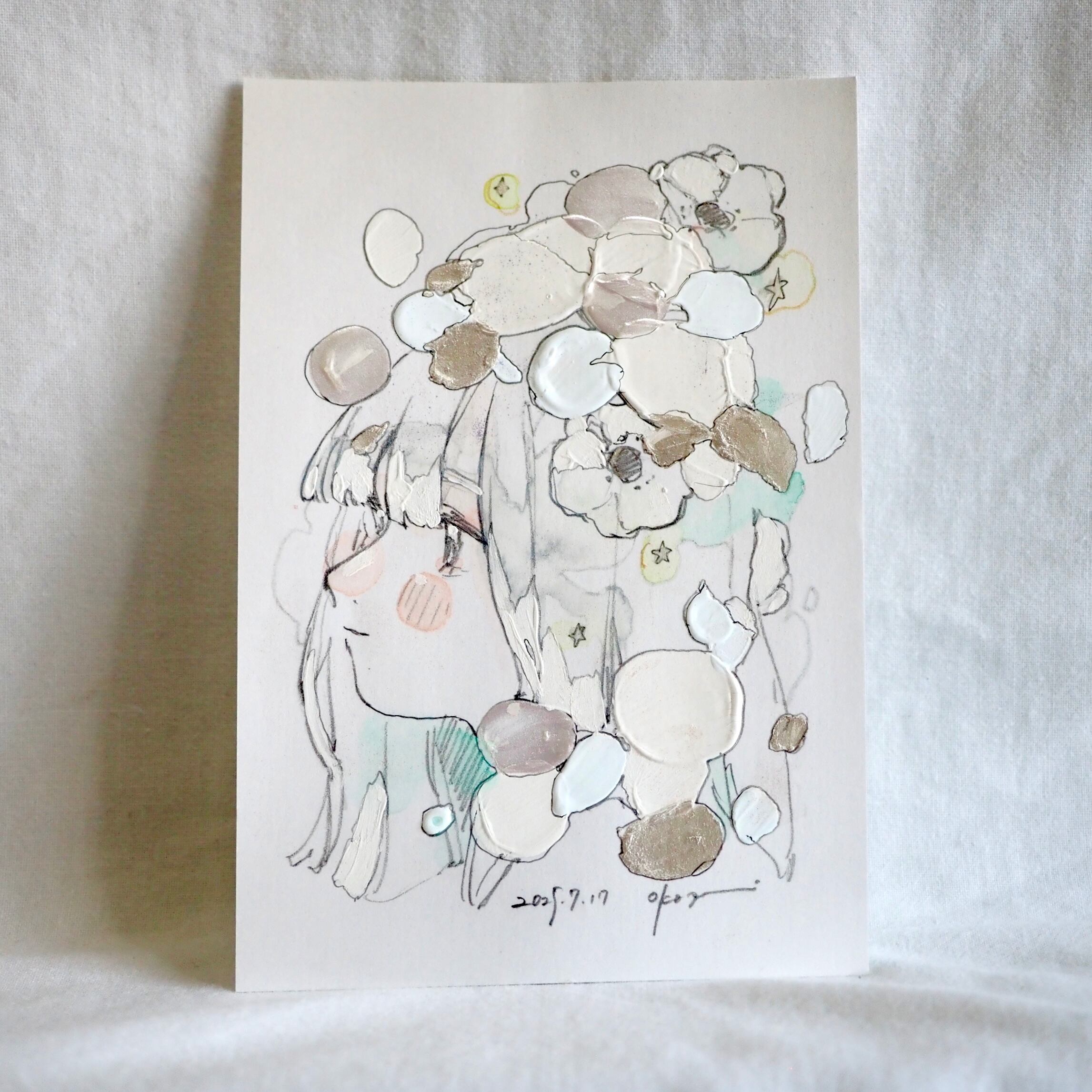 ピュアなひとときを映し取り、静かな輝きを宿すドローイング作品です。